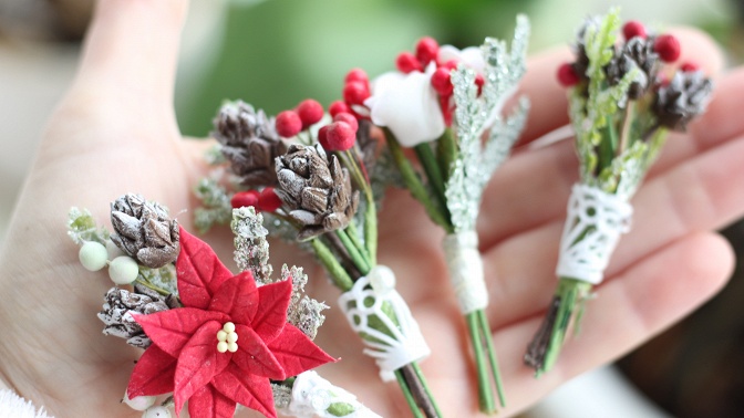 — лепка пуансетии, ягодок, шишек;