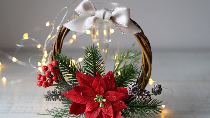 В мастер-класс «Новогодний венок с рождественским цветком» входит: