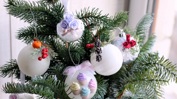 — украшение 2-х новогодних шариков 8 см;